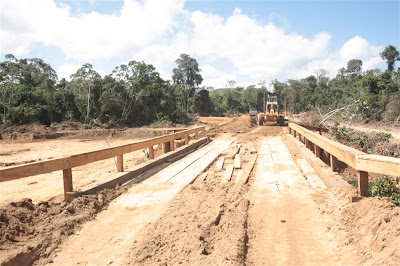 que estão sendo construídas na vicinal do km 180 Sul, às proximidades do Rio Uruará,